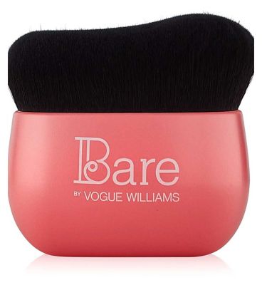 This Bare by Vogue Williams item is a professional-grade makeup brush featuring a dense, dome-shaped head. The ergonomic design is engineered for achieving seamless application and precise blending of face products. It is supplied within a distinctive coral-pink container for convenient storage.