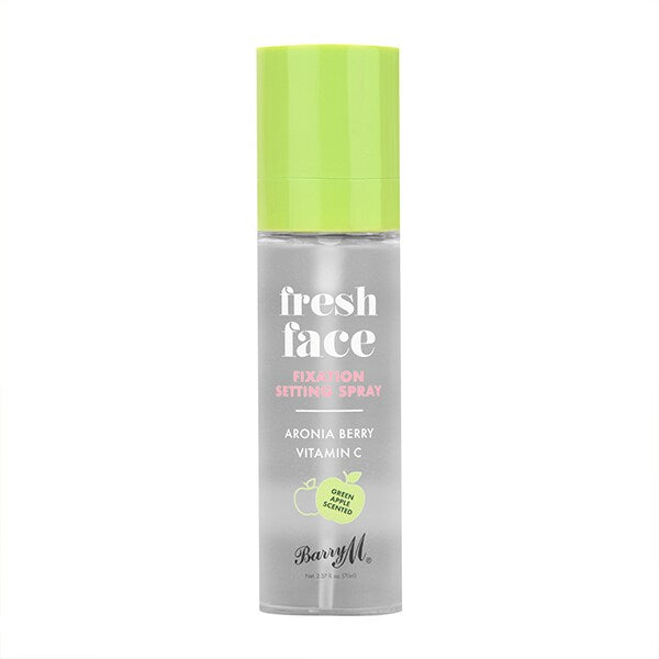 lock makeup in all night long with barry ms fresh face fixation setting spray formulated with vitamin c to brighten and hydrate your complexion and a fresh apple scent