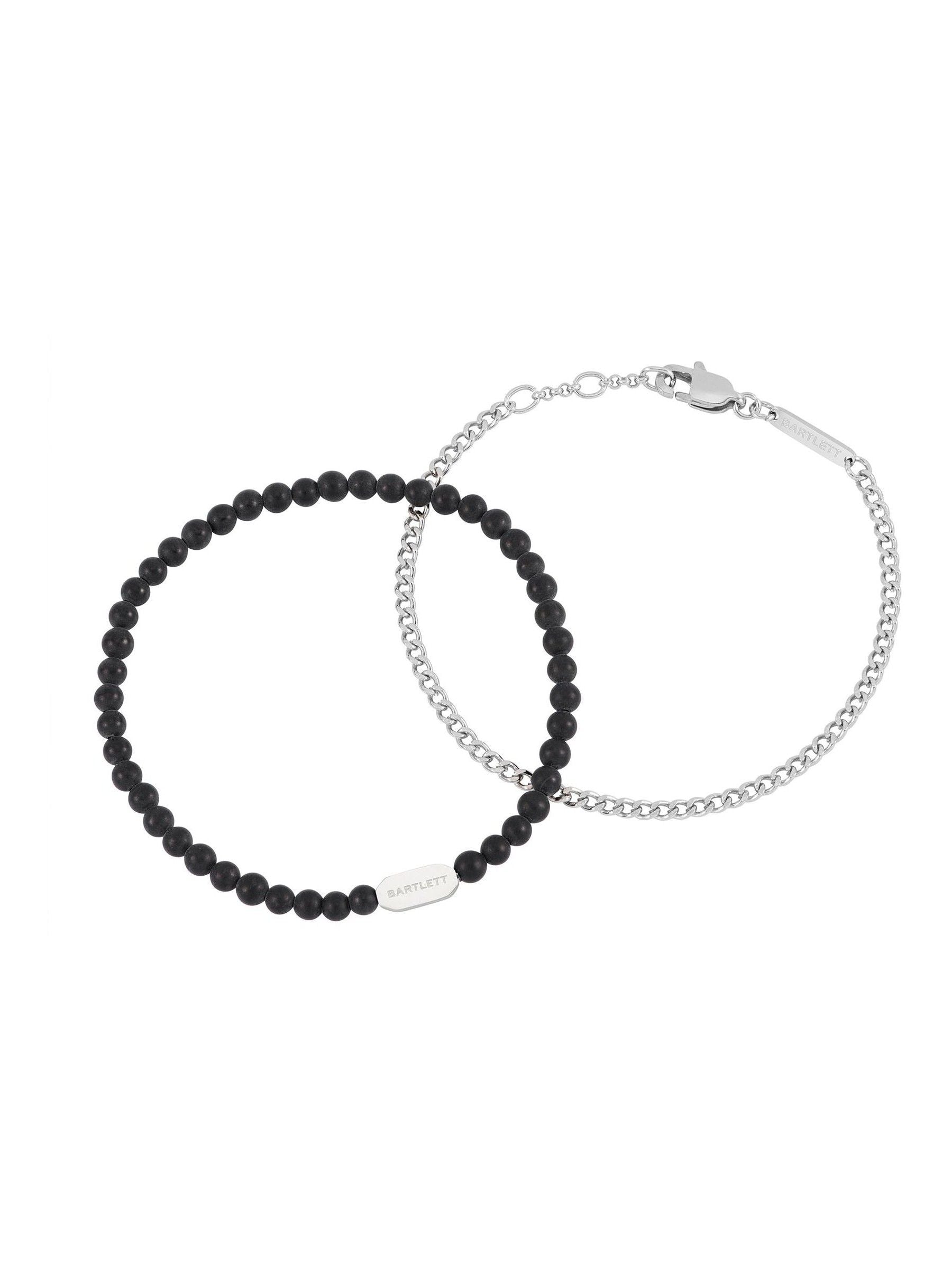 Bold and functional, the Bartlett London Men's Waterproof matte black Onyx Duo Bracelet Set pairs durability with modern design. Featuring smooth onyx beads and a matte black finish, both bracelets are built to withstand water and wear. This versatile set is perfect for layering or solo wear—sophisticated, sleek, and ready for anything. Measures 19 - 20.5cm.