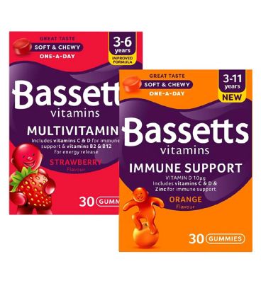 Secure this Bassett's Vitamins 3yrs Bundle offering two essential 30-gummy packs for your child's daily Nutritional intake. Included are the Strawberry Multivitamin for 3 to 6-year-olds and the Orange Immune Support for children up to eleven years old. Both feature great-tasting, soft, and chewy gummies for easy, convenient daily supplementation.