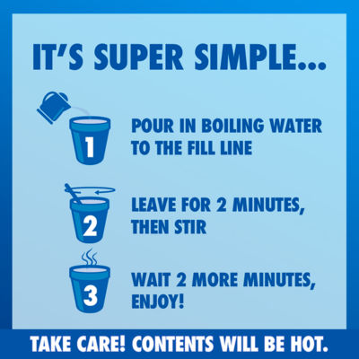 FeaturesOodles of flavour in an instant. One Serving Noodle Pot. Ready in four minutes. Enjoy as a tasty filling meal in only a matter of minutes.. Quick and easy.
