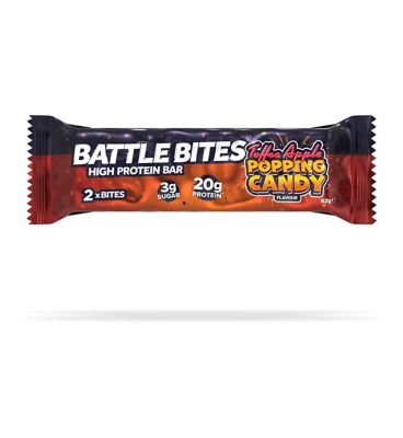 Enjoy the unique Battle Bites Toffee Apple Popping Candy protein bar for a satisfying and novel treat.