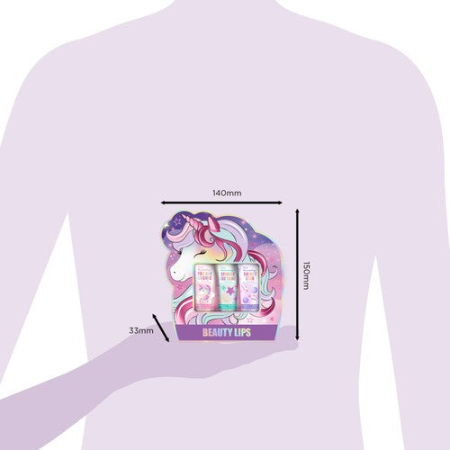 Enjoy magical glam on-the-go with this Beauticology Cosmic Beauty Lip Trio Gift Set. This collection contains three 8ml lip glosses, each offering a delightful, sweet vanilla-inspired fragrance. These playful scents are designed to capture the magical sweetness of a fairytale adventure.