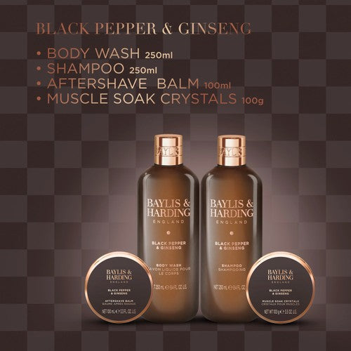 This Baylis & Harding collection enhances his daily routine with premium toiletries presented in recyclable cardboard packaging. It features the rich, timeless fragrance blend of Black Pepper and Ginseng, combining stimulating fruity and spicy notes for a refined experience. This set offers essential products to upgrade any man's self-care regimen.