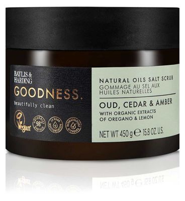 Indulge in the Baylis & Harding GOODNESS Oud, Cedar & Amber Natural Salt Scrub for effective skin exfoliation. This 450g body treatment is formulated with natural oils to leave skin feeling soft after use. Enjoy the rich, warm fragrance notes while deeply cleansing your skin throughout the body.