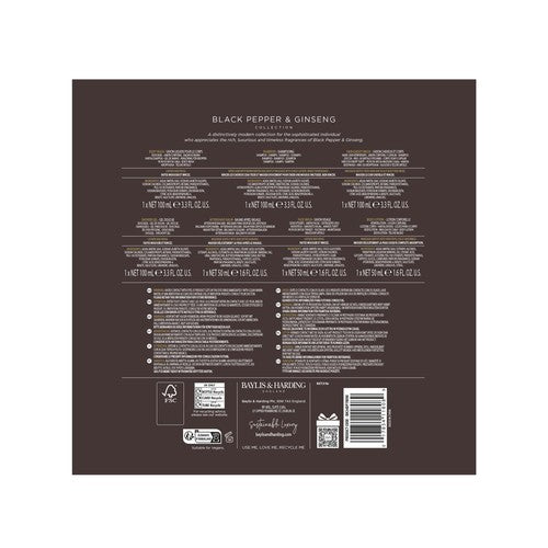 This Baylis & Harding gift set features the rich and luxurious Black Pepper & Ginseng fragrance, designed for the sophisticated individual. This distinctively modern collection embodies timeless and masculine scent profiles for daily use. It serves as an exceptional men's gift set for any special occasion.