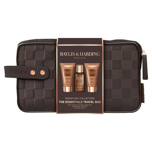 This Baylis & Harding Men's Essentials set provides a coordinated grooming experience housed within a smart, classic wash bag. It contains vital cleansing products enhanced by the refined Black Pepper and Ginseng signature aroma.
