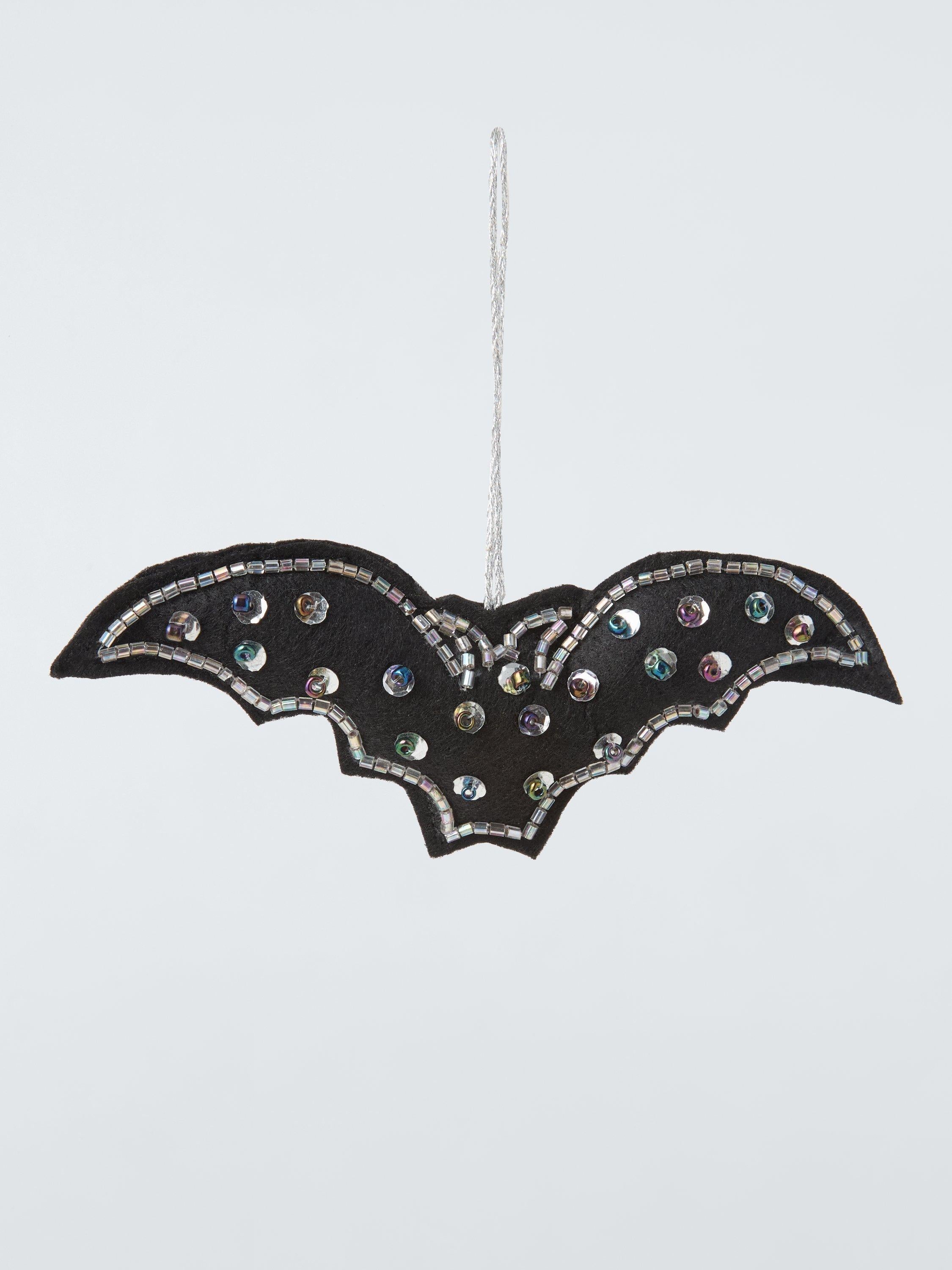 Add this John Lewis Beaded Bat Hanging Decoration to your seasonal décor collection. Covered entirely in shiny silver beads and sequins, this accessory catches the light beautifully throughout the room. It is an essential, sparkling addition to any Halloween display or spooky tree arrangement this autumn.