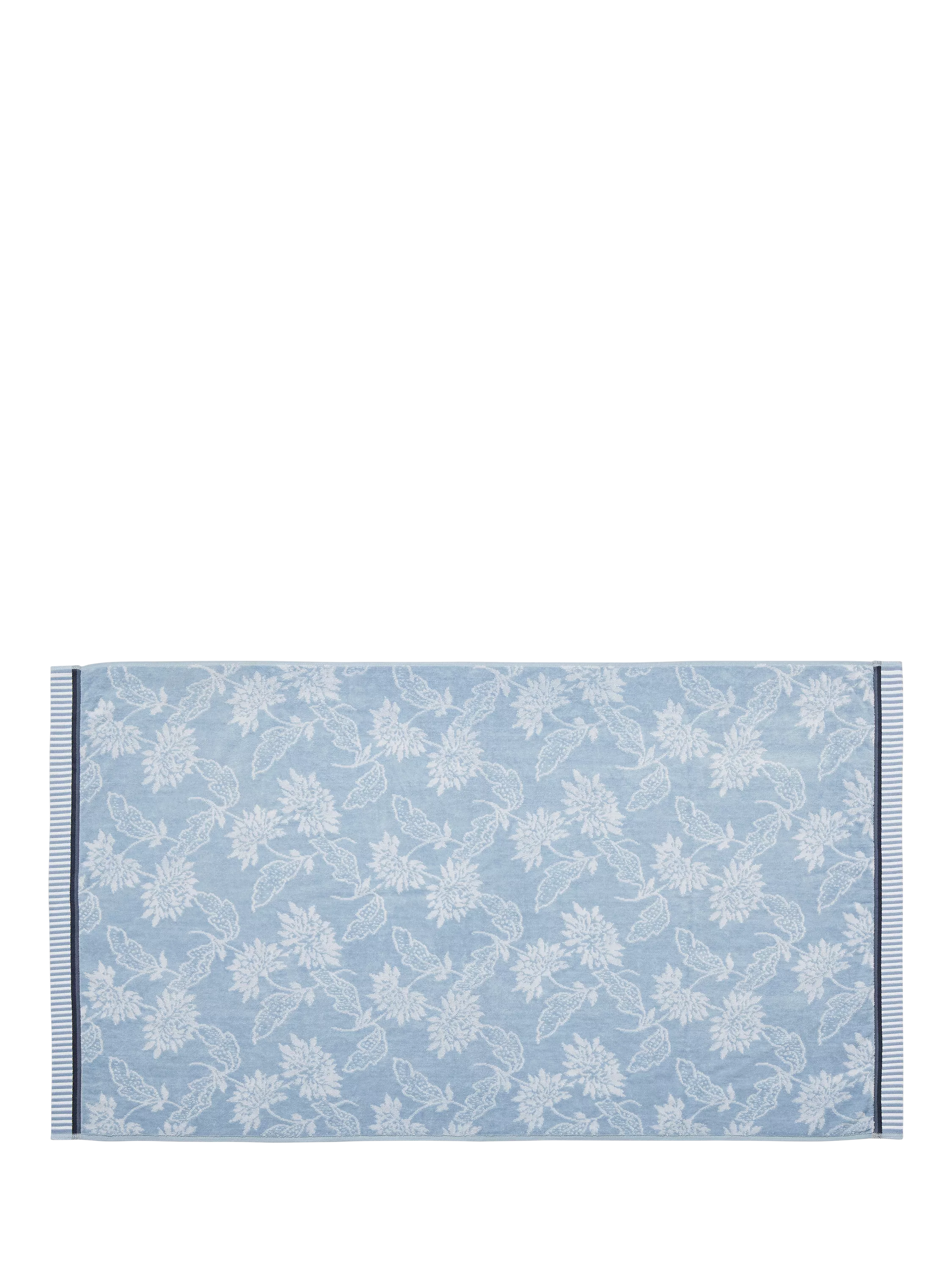 A beautifully intricate floral design towel in rich chambray blue. Both ends are finished with a jacquard woven hem for added interest. Beautifully soft in 100% cotton and perfect for bringing feminine luxury to your bathroom setting.