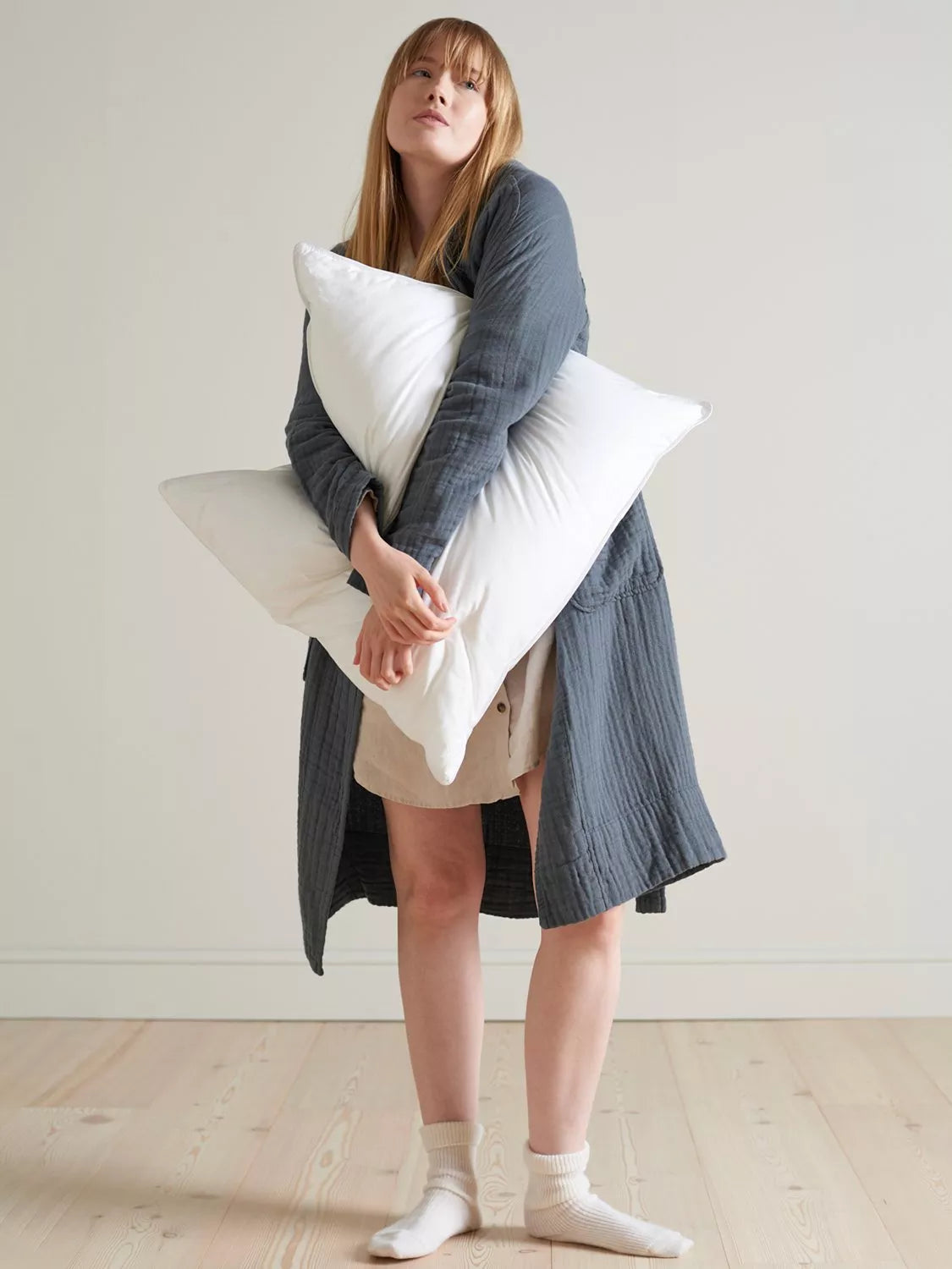 Handcrafted in Scotland, this cosy pillow is filled with Bedfolk's signature white European down and white European duck feather to create a satisfyingly plump and fluffy feel. Its weighty filling means it will bounce back into shape with little plumping.