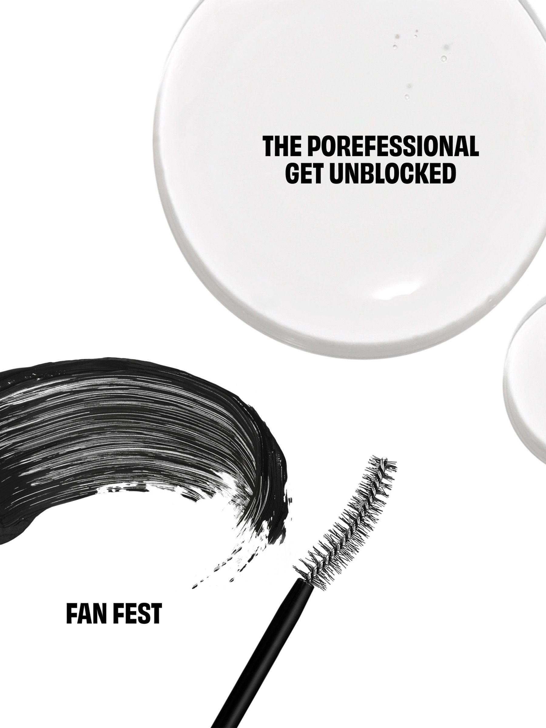 Lash, Cleanse, Go is the name of the game, and keeping lashes fanned out, then melting away makeup is the aim. With a fanning & volumising mascara like Fan Fest, you can talk a big lash game, because it won’t flake, smudge, or fold under the pressure of game night and beyond. Then, the POREfessional Get Unblocked makeup-removing cleansing oil swoops in to visibly unclog & unblock pores. Bonus points for remembering to take off your makeup? Always. WHAT’S IN IT Fan Fest fanning & volumizing mascara in hyper black | mini The POREfessional Get Unblocked pore-clearing makeup-removing cleansing oil mini.