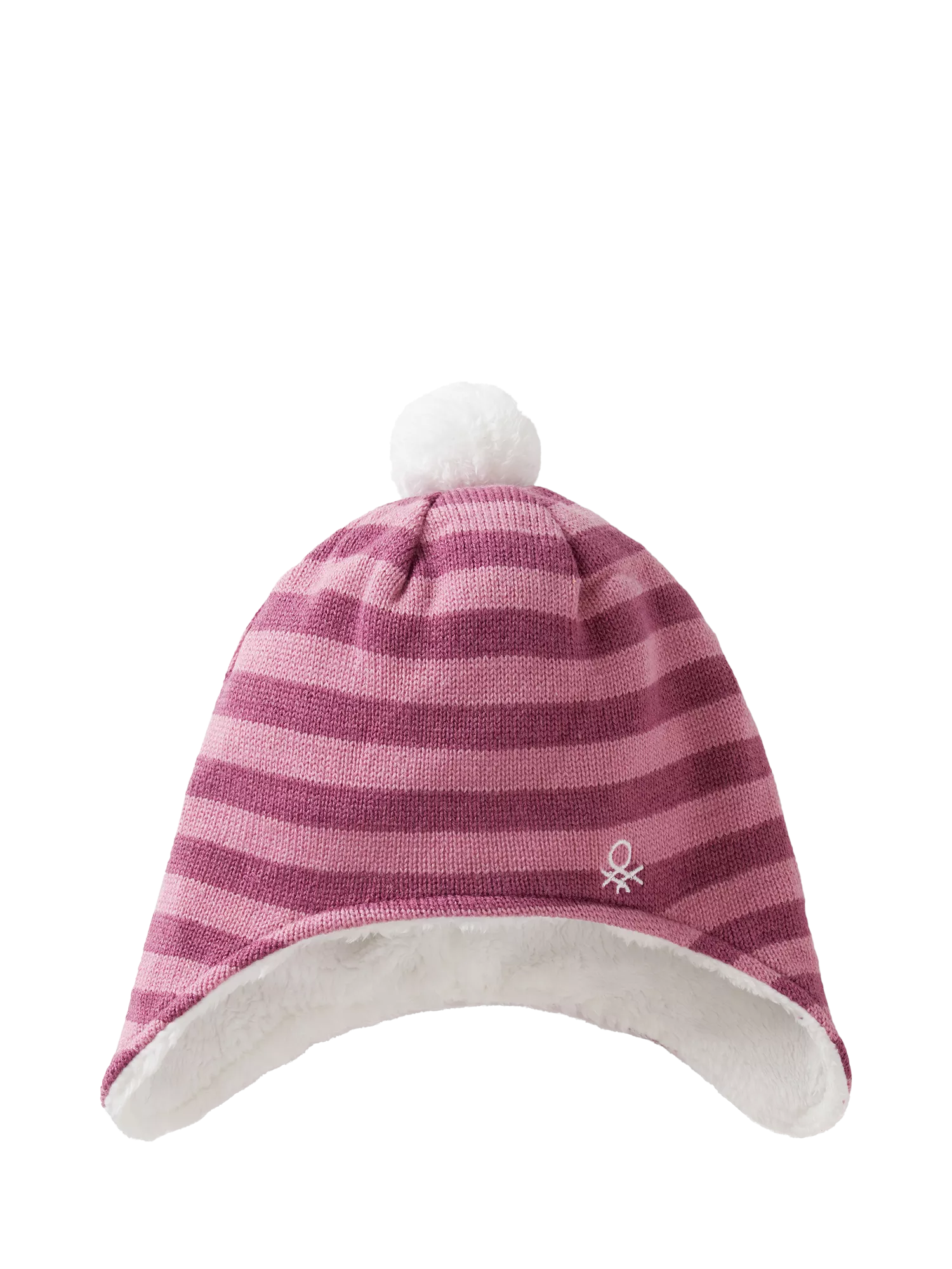 A snow day essential, this knitted hat has a striped design and will keep them cosy thanks to integrated ear muffs and a super-soft faux fur lining. It's decorated with a pom-pom and embroidered logo.