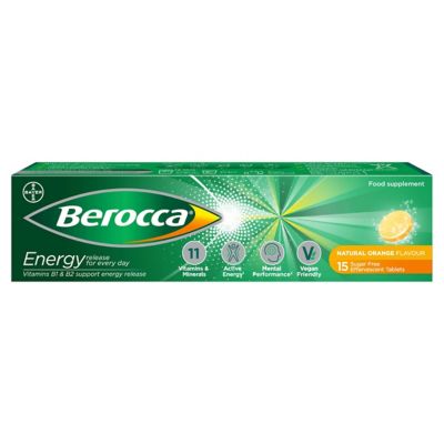 This pack contains 15 orange flavour tablets designed to support your body's natural processes. Berocca works by supplying key B vitamins that help convert your food into usable energy throughout the day. It is formulated to assist both physical stamina and mental clarity when you need it most.