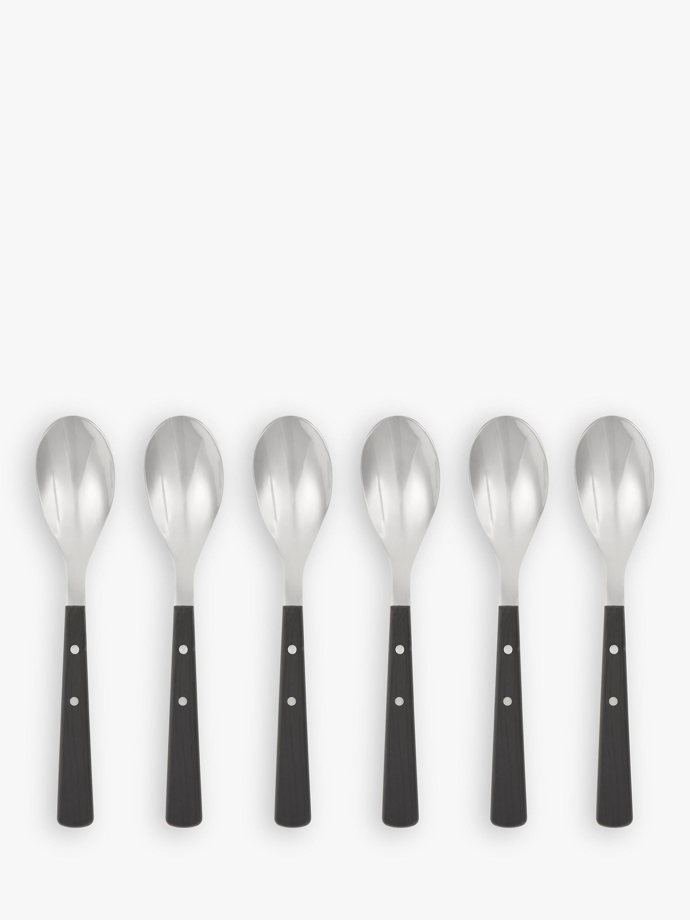 This Bevel Teaspoons Set of 6 brings a classic look to your tableware. Crafted from solid 18/0 stainless steel, these spoons guarantee lasting quality for frequent serving. The unique handles are moulded plastic, designed with a convincing wood-effect finish for comfortable handling. This set elevates everyday meals with reliable construction.