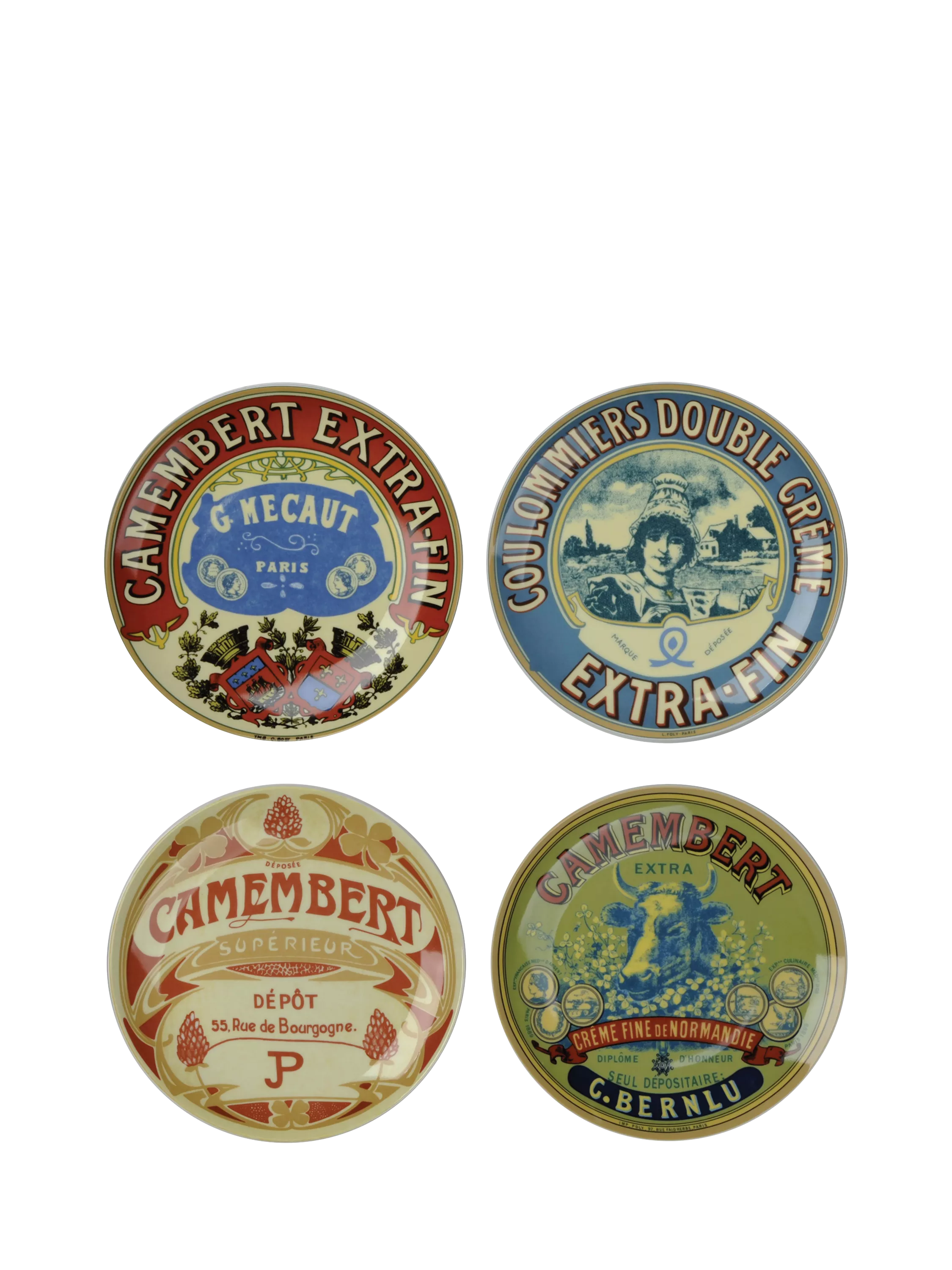 Four canapé plates with vintage-style designs. Made of porcelain, they're dishwasher-safe for easy cleaning.
