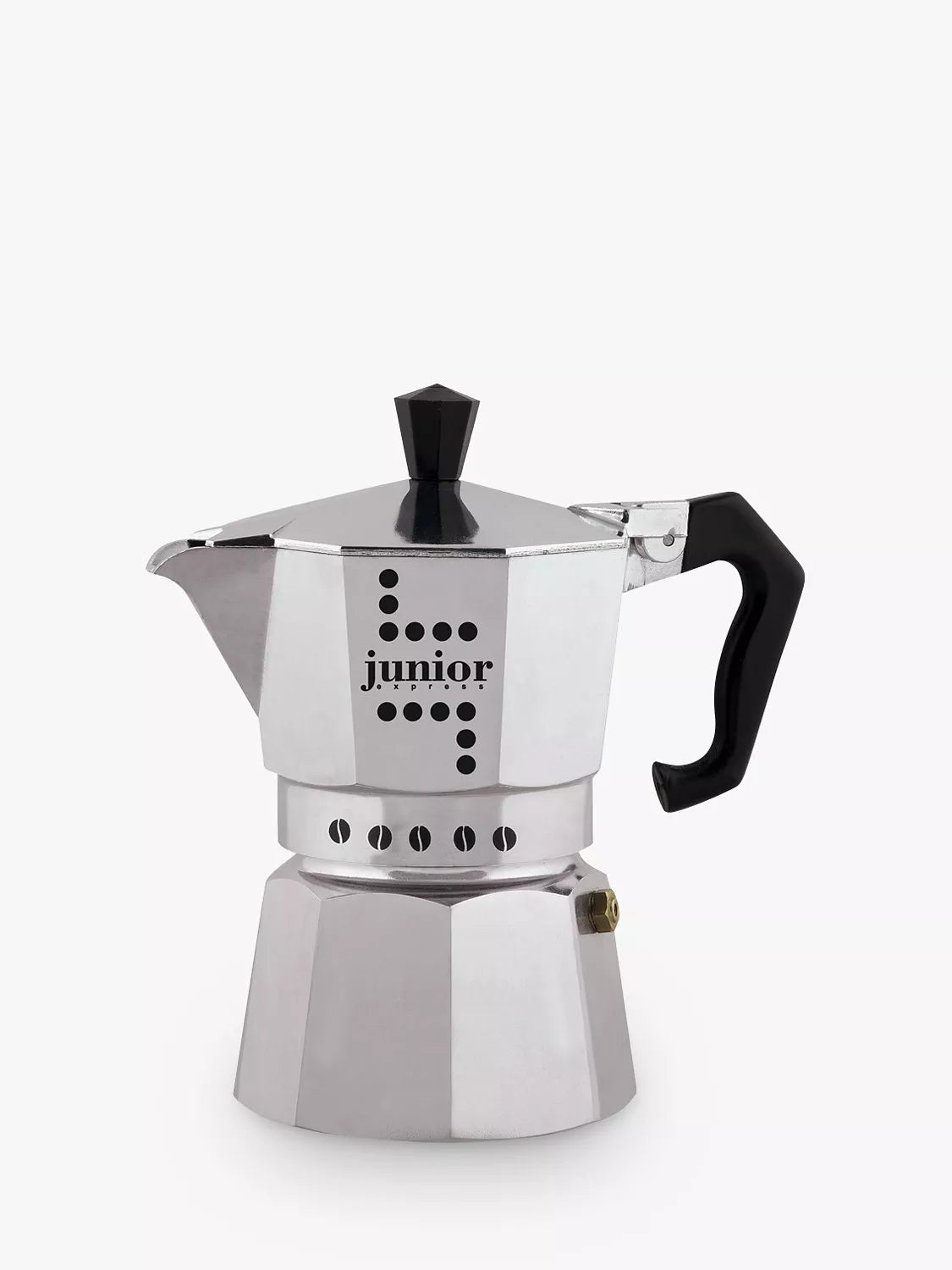 Similar to that icon of Italian design, the Moka Express from Bialetti, the Junior Express has a multi-faceted shape, but with ten sides. Stylish and practical, made from lightweight aluminium with a robust and comfortable handle, it makes delicious espresso cups from ground coffee, full or aroma and taste.