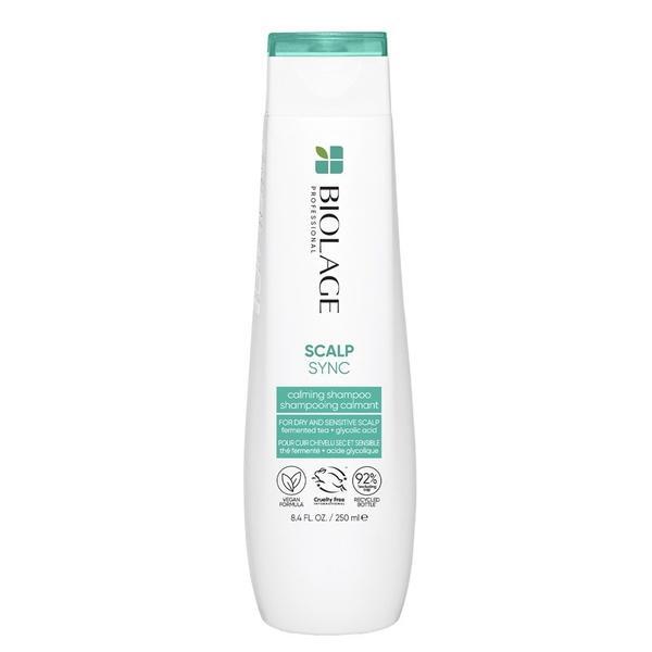 - Say goodbye to scalp dryness and tightness and hello to a soothed, happy scalp with this Biolage Scalp Sync Calming Shampoo for Dry and Sensitive Scalps in 250ml. Infused with nourishing ingredients, including fermented tea and glycolic acid, this shampoo prevents dryness and tightness from lack of moisture and provides the scalp with weightless hydration. The result? The scalp is left looking and feeling healthier and hair is smooth and more manageable. Ingredients: Aqua / Water / Eau