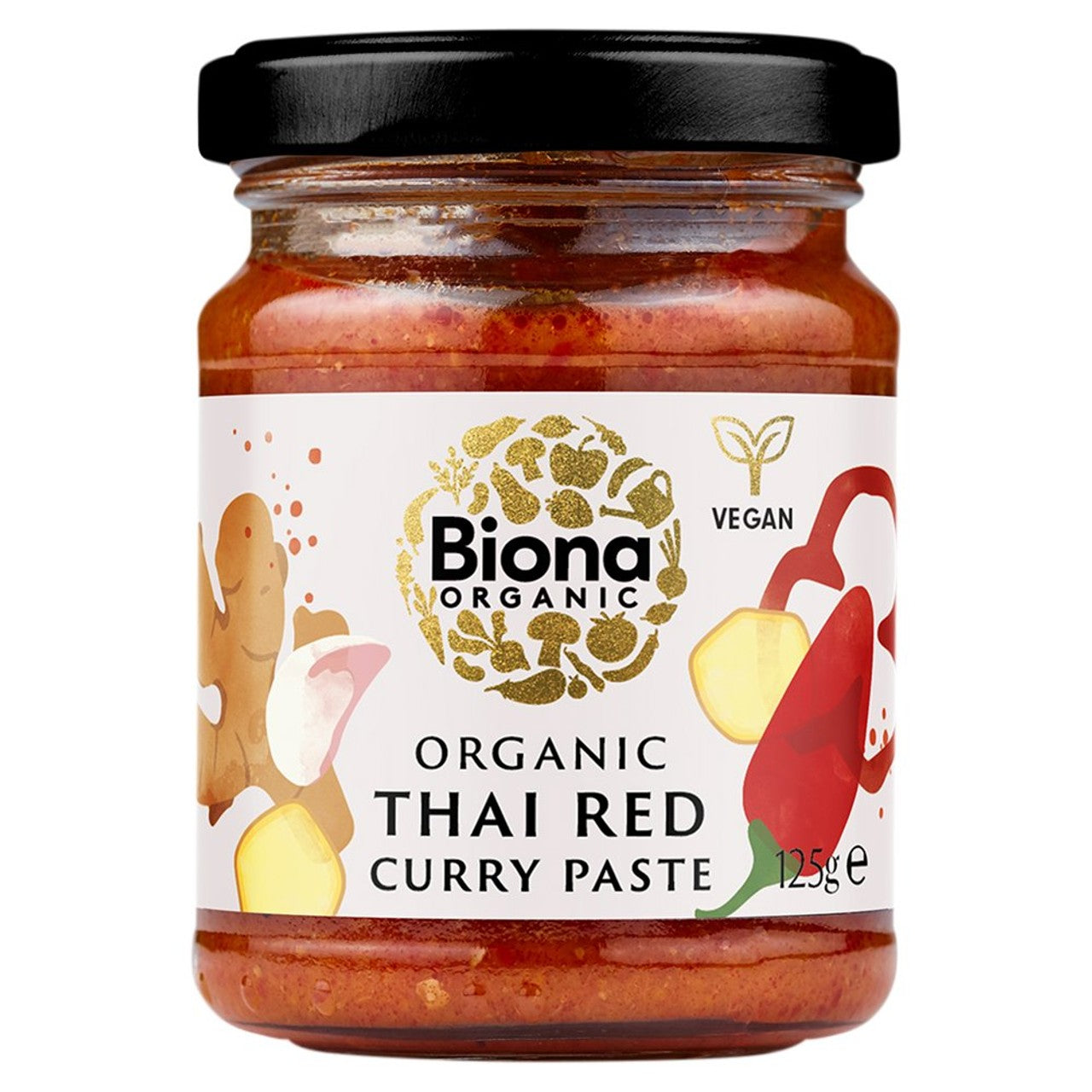 Biona Organic Thai Red Curry Paste offers an authentic flavour base for quick and easy meal preparation. This vibrant red paste comes in a 125g glass jar, ensuring freshness and quality. It is certified organic and specifically formulated to be suitable for vegans, making it a versatile pantry staple for diverse dietary needs.