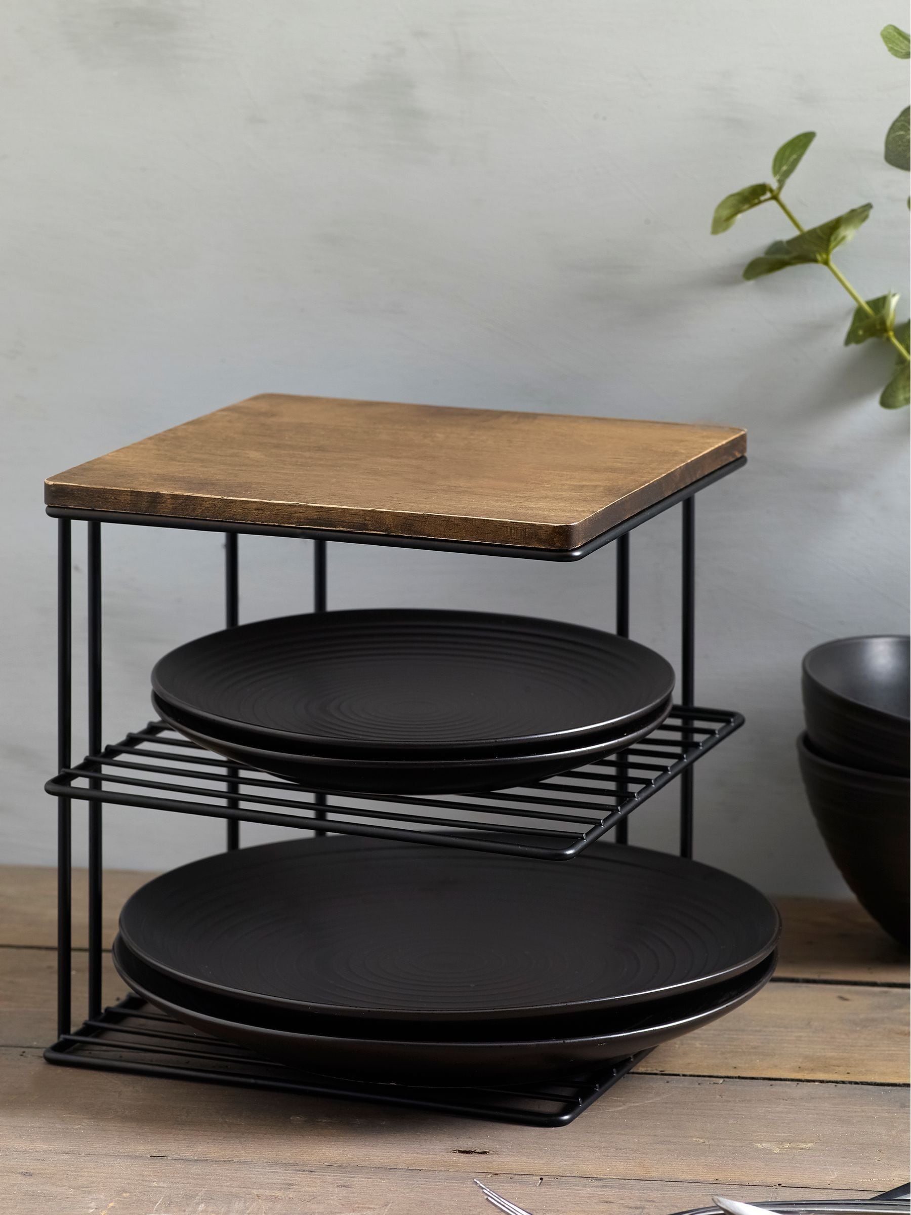 This 2 tier corner plate rack is a great space-saving solution for storing your dinnerware. This plate rack can be used inside your cupboards for optimum organisation or used as a stylish feature on your worktop to showcase your favourite dinnerware set.