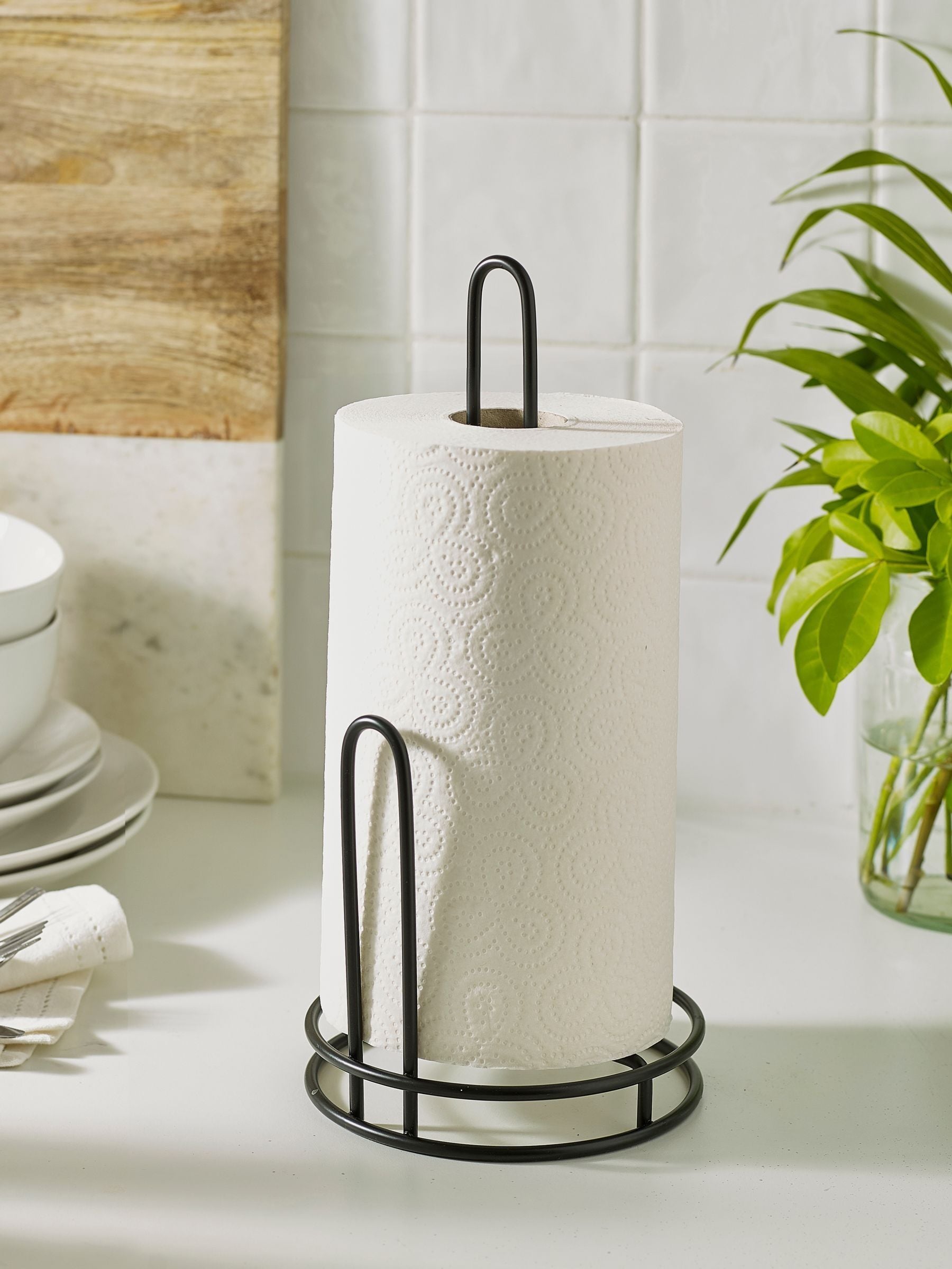 Sleek and practical, our black wire kitchen roll holder is the perfect staple addition to your kitchen. With space to hold any standard kitchen roll size, including extra large.