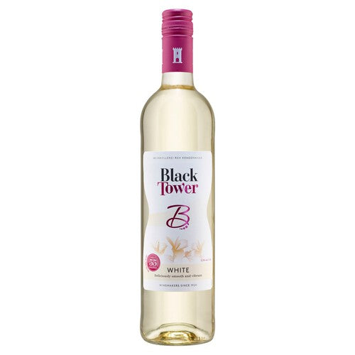 A smooth, refreshing and vibrant white with rich fruit flavours but with only 232kJ/55 kcal per 125ml glass (186kJ/44kcal per 100ml) - over 30% less than standard wine with 9.5% vol. Enjoy well chilled on its own or as a great accompaniment with your favourite foods. With a contemporary, unique look and modern, easy-drinking taste, Black Tower delights wine lovers all over the world. Please drink responsibly: The UK Chief Medical Offers recommend adults do not regularly drink more than 14 units per week