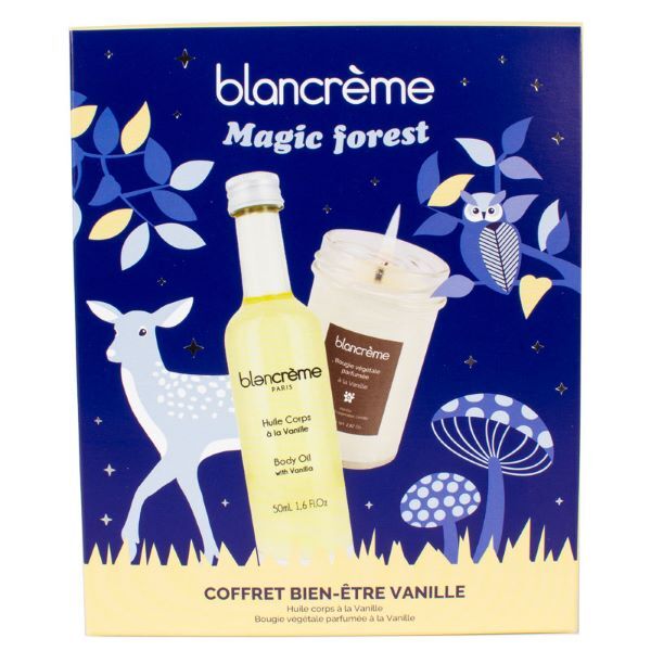 a wellbeing gift set combining a nourishing vanilla body oil for massage use and a vanillascented room candle for a relaxing soothing sensory experience a gift set for yourself or to share