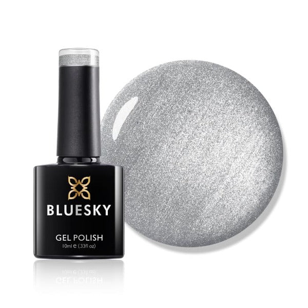 This Bluesky gel polish in 'Move With Grace' delivers a striking silver pearl finish, inspired by the SS21 collection. It provides a high-gloss look designed to remain impeccable and vibrant for an extended duration when applied correctly.