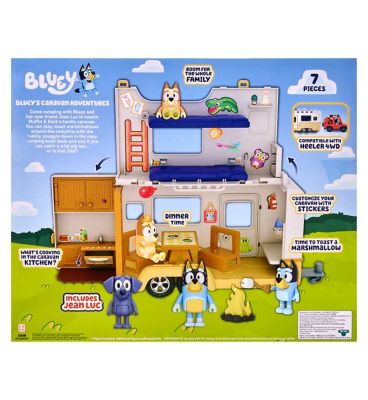This Bluey Caravan Adventures toy transforms to reveal an immersive interior for imaginative role-play fun. The set centres around a detailed caravan that opens up, providing multiple areas for Bluey and her friends to explore. It includes four articulated figures, allowing fans of the popular animated series to recreate their favourite caravan adventures right at home.