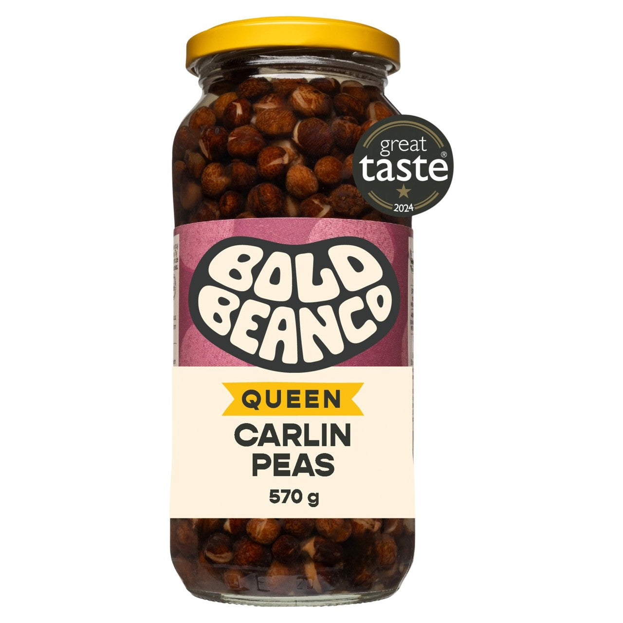 Bold Bean Co Queen Carlin Peas are produced in collaboration with Hodmedod, offering a selection of high-quality pulses. These peas are slowly cooked to achieve a very soft texture and a subtle nutty flavour profile reminiscent of chickpeas. This convenient format saves time compared to soaking and boiling dried legumes.
