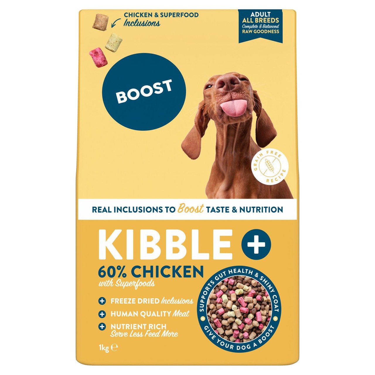 This premium grain-free pet kibble is enhanced with real chicken and superfood freeze-dried inclusions to maximise both taste and nutrition for your companion. The formula is carefully constructed to support several key areas of canine health using functional ingredients.