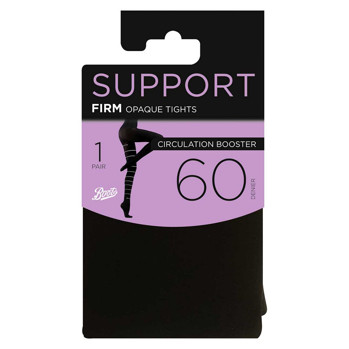 Boots 60 denier opaque firm support tights 1 pair pack in size small give complete coverage to your legs while strong graduated compression help relieve tired legs.