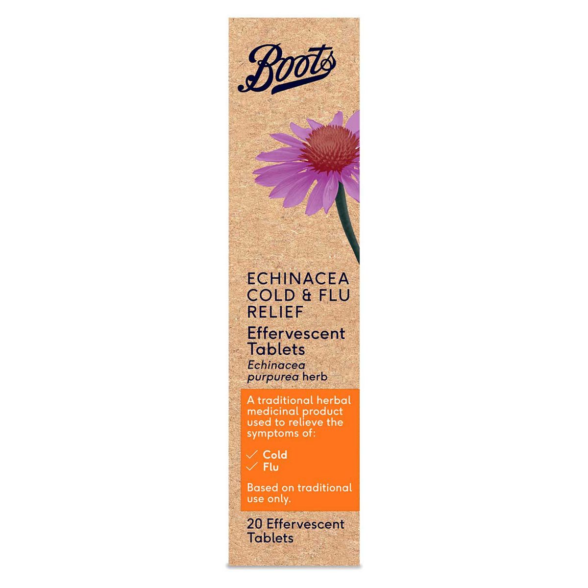 Boots Cold & Flu relief Echinacea Effervescent tablets 176mg dried juice of Echinacea purpurea herb. Based on traditional use only. See details below, always read the label