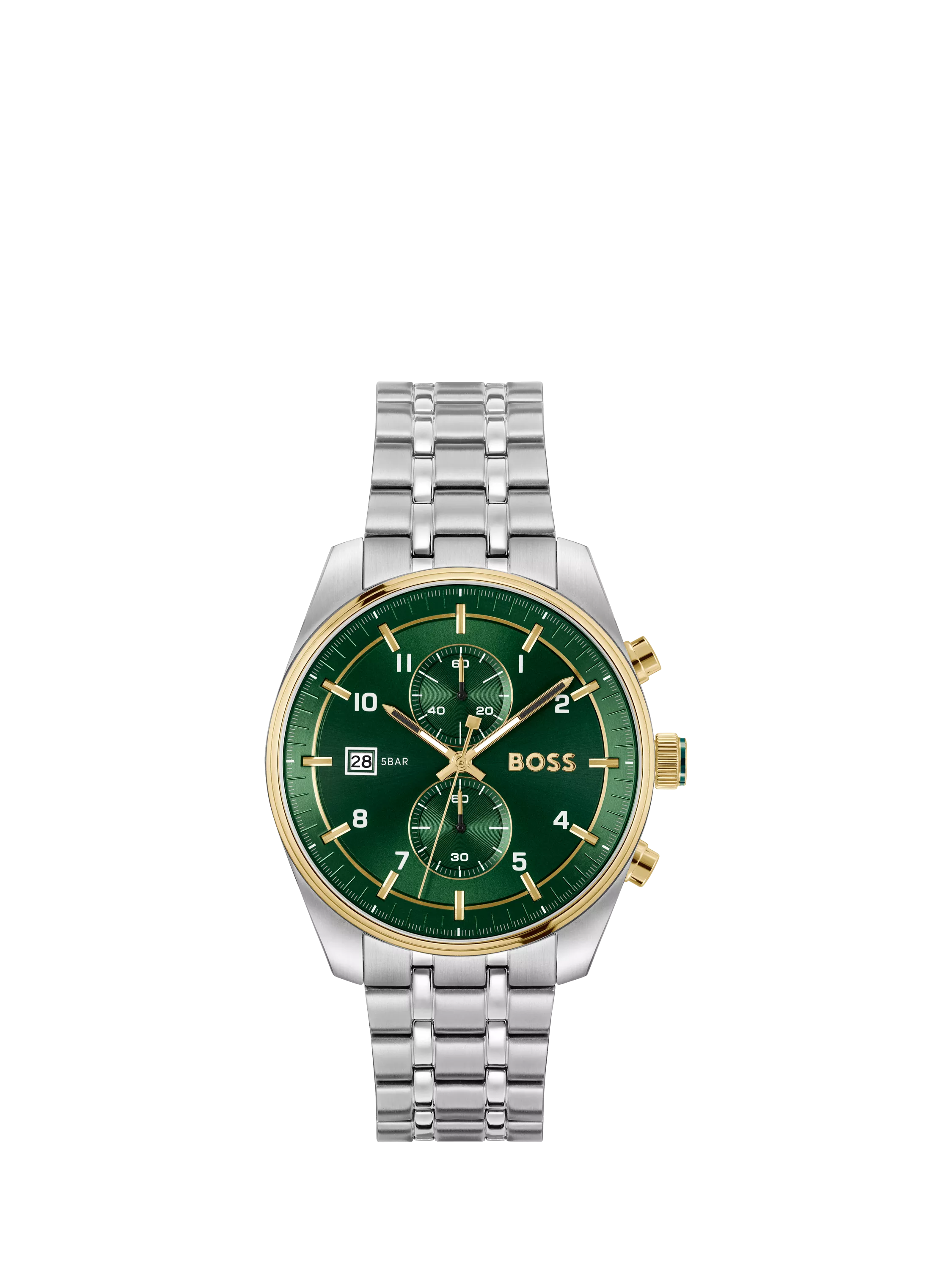 Bringing an individual take on practicality, this timepiece from BOSS comes in a rounded case.