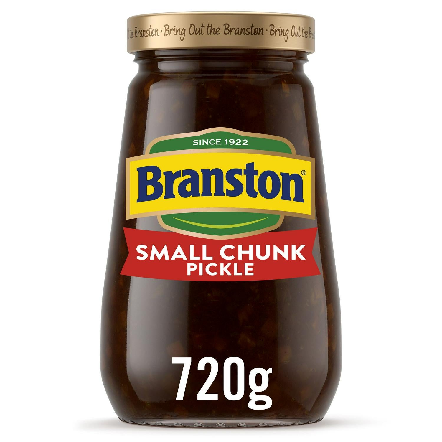 Experience the beloved Branston flavour presented in a convenient small chunk size. This traditional sweet pickle mixes vegetables and spices, pairing well with sandwiches or cheese selections.