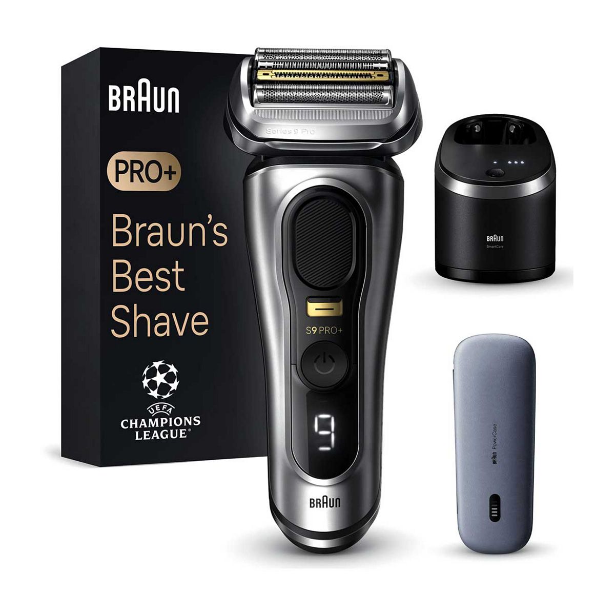 The world's most efficient electric razor (tested vs. leading premium tier products), reinvented to be even better. The Series 9 Pro is efficient and gentle in every stroke, no matter if you're shaving a 1, 3, or 7-day beard. The razor for men features the unique ProLift trimmer that lifts and cuts long and flat hair. This shaver comes with the first-ever PowerCase: a charging shaver case which charges your razor for up to 6 weeks of use. The shaver easily captures even the tough hairs thanks to the redesigned Precision Switch - particularly useful in tricky areas.