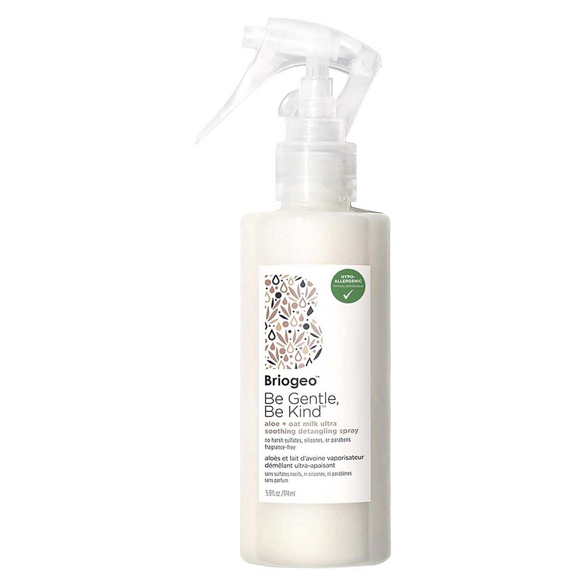 A hypoallergenic, dermatologist tested, fragrance- and essential-oil-free leave-in detangler formulated with aloe vera and oat extract to leave hair shiny with a lightweight finish.