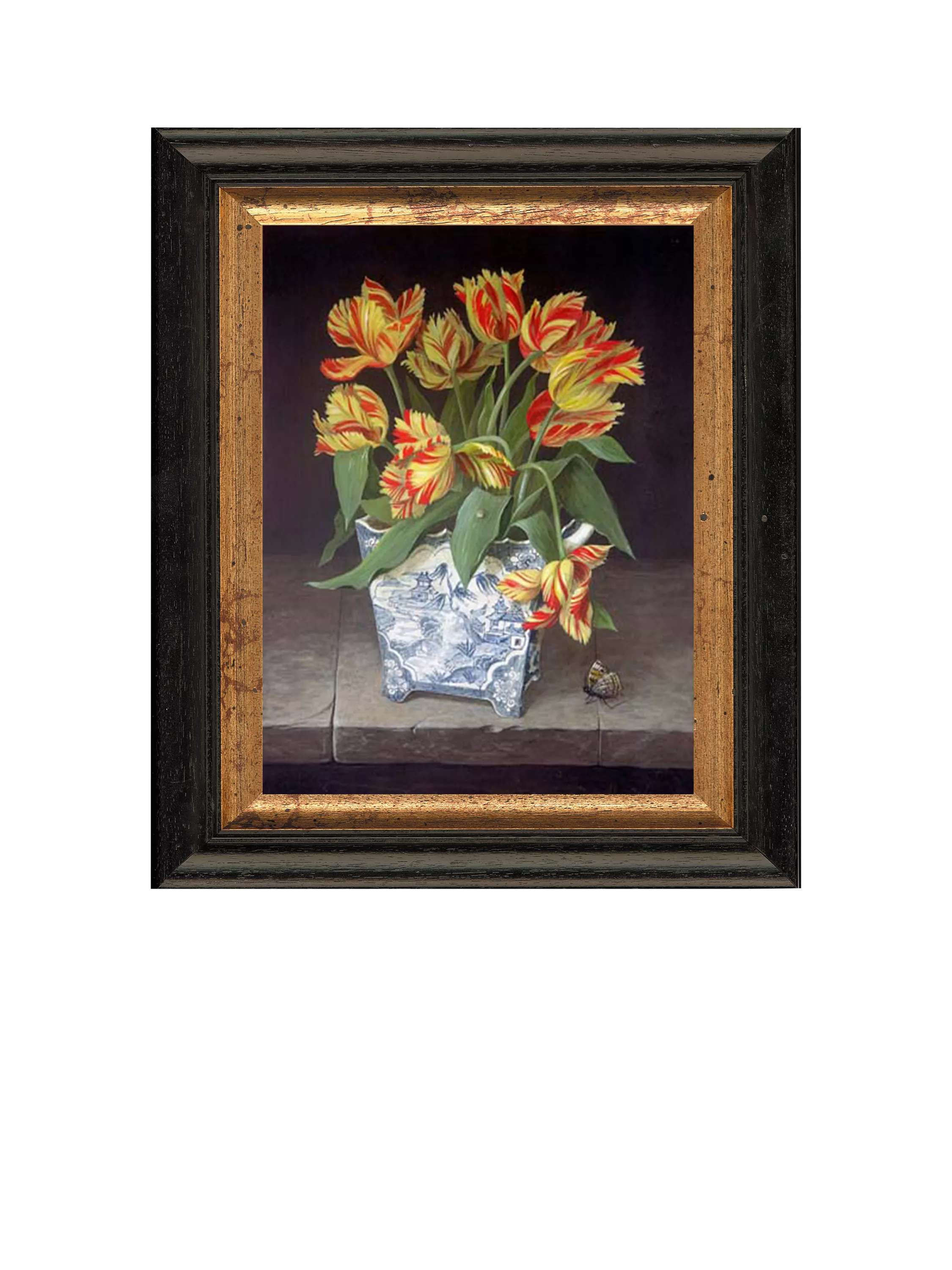 'Orange Tulips in China Vase'. With the use of both up-to-date technology and skilled craftsmen, this unique and high-quality picture captures all the colour, craquelure, texture and character of an original painting. Each oleograph is a masterpiece in its own right and is carefully hand-finished to recreate the timeless look and appeal of an original.