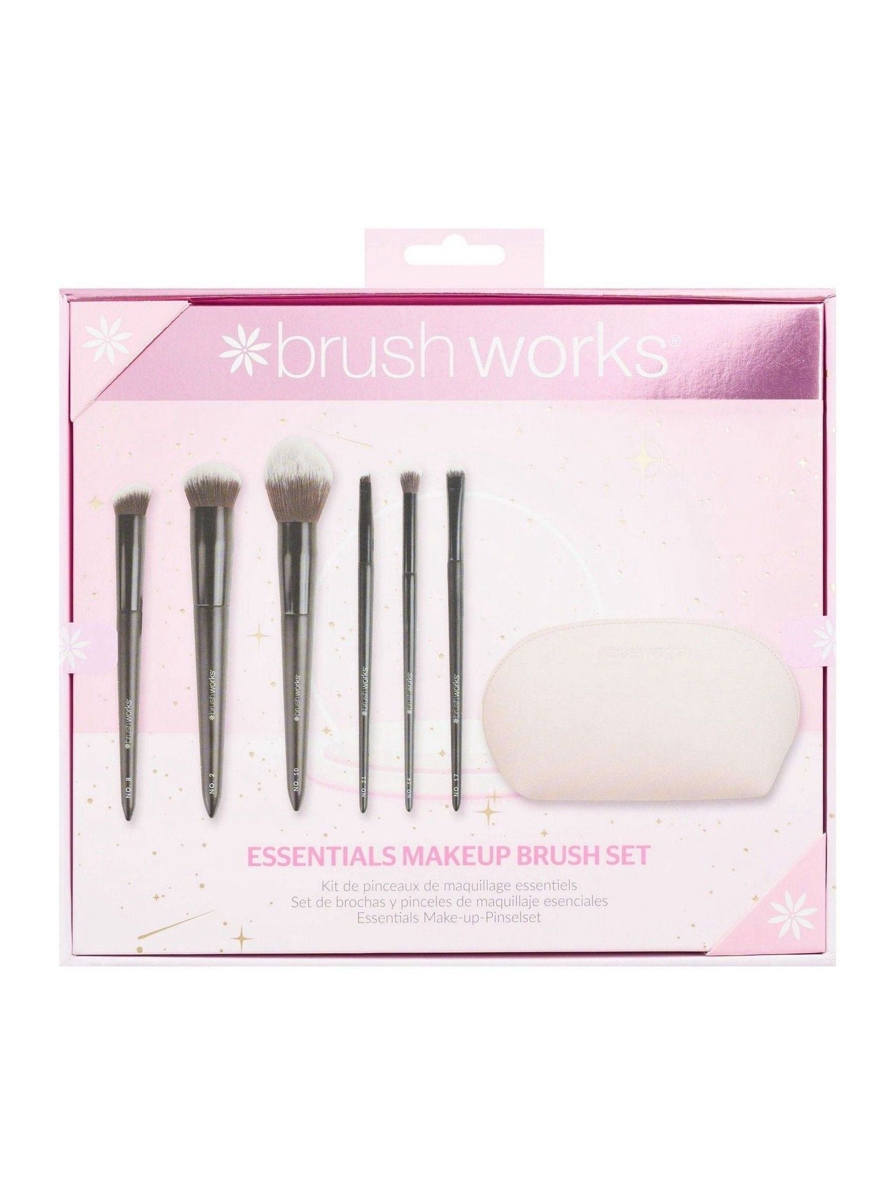 Brushworks Elevate your makeup game with the Brushworks Essentials Makeup Brush Set, a must-have collection for any beauty enthusiast. This set includes all the essential brushes you need to achieve smooth coverage and keep your tools organised. With brushes tailored for every step of your beauty routine, from foundation to eyeshadow application, you'll have the ideal tools at your fingertips. The set features three face brushes, three eye brushes, and a convenient makeup bag to store them all. This versatile brush set provides the tools to achieve professional-quality makeup looks with ease and precision. PETA Approved - Cruelty-Free & Vegan Friendly. Essentials Makeup Brush Set.
