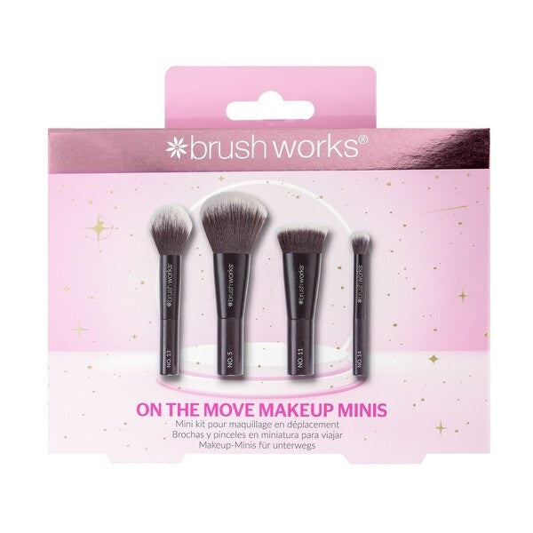 brushworks on the move makeup minis set is the ultimate brush set for on the go featuring 4 mini makeup brushes they fit perfectly into a handbag for touch ups no matter where you are