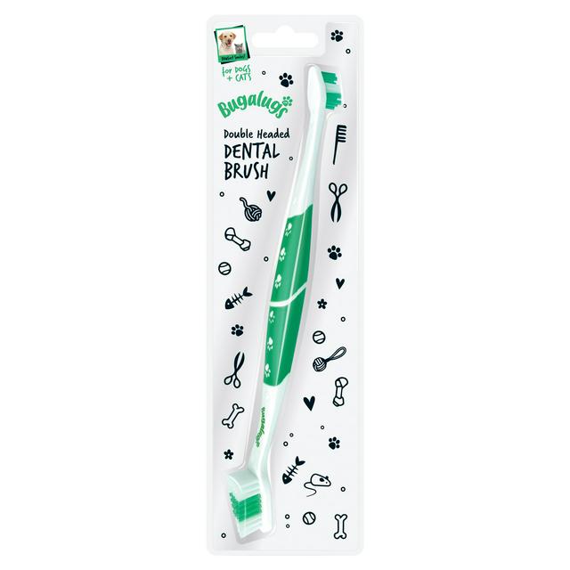 Maintain your pet's oral hygiene effectively with the Bugalugs Double Headed Toothbrush, suitable for all breeds of dogs and cats. This dual-ended brush is shaped precisely to navigate the contours of your animal's teeth for thorough cleaning. It helps remove plaque and tartar buildup, ensuring better overall health.