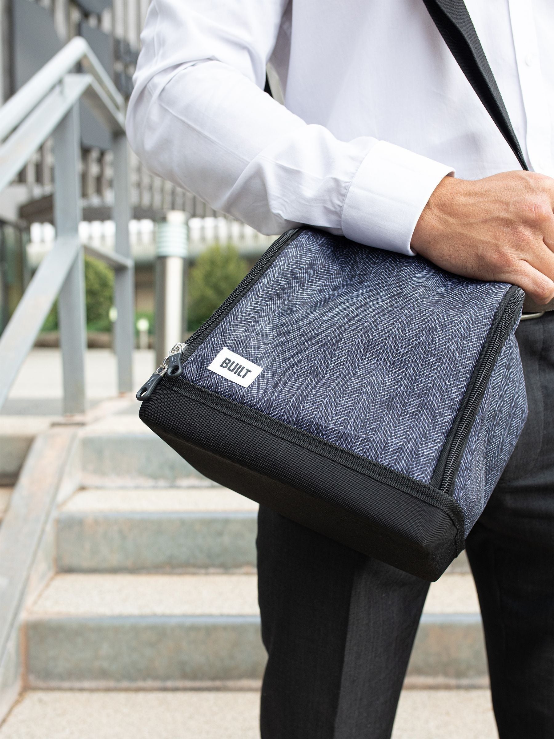 Mealtimes on the move just got a whole lot more practical. This BUILT insulated lunch bag features a layer of powerful polyethylene insulation, which keeps your packed lunches and snacks fresh and cool for longer. Its design blends compact size with smart thinking: inside it s deceptively big, with plenty of space for lunch boxes, yoghurt pots, fresh fruit and lots more. You ll even be able to fit in cutlery and napkins too. This makes it just as suitable for small picnics as it is for lunch hours at work. With a leakproof PEVA lining, it also keeps any leaks or spills contained - stopping them putting a dampener on your day!