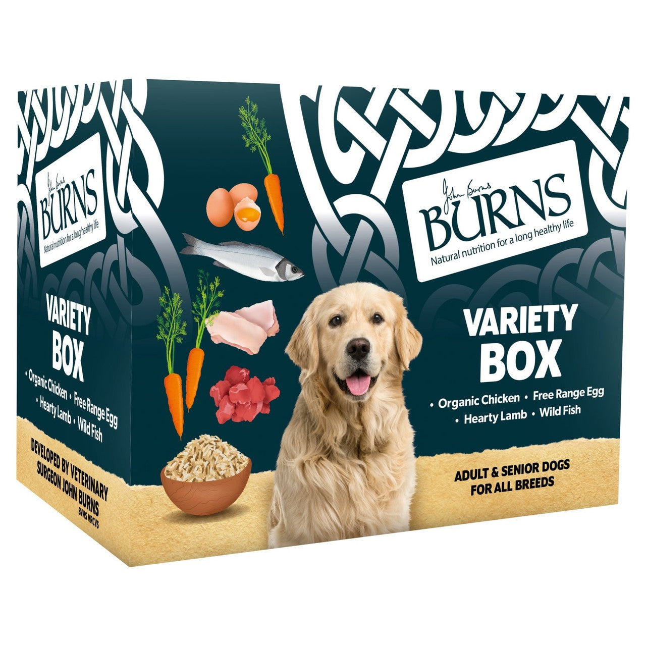 This Burns dog food variety box provides varied, highly digestible meals developed by veterinary surgeon John Burns. Each flavour contains essential proteins, brown rice, carrots, vitamins, and minerals suitable for adult and senior dogs. Serving a rotation of these recipes helps maintain your pet's interest and ensures broad nutritional intake.