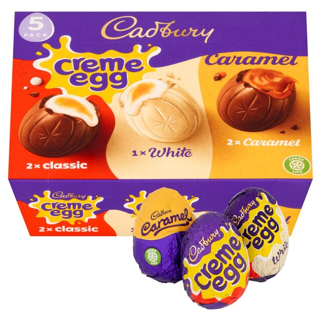 Bite into a deliciously thick Cadbury milk chocolate egg and savour its gooey, indulgent white-and-yolk fondant centre. There are a million ways to eat it, but thereâs only one Cadbury Creme Egg. Made with sustainably sourced cocoa. Vegetarian friendly.