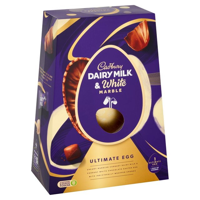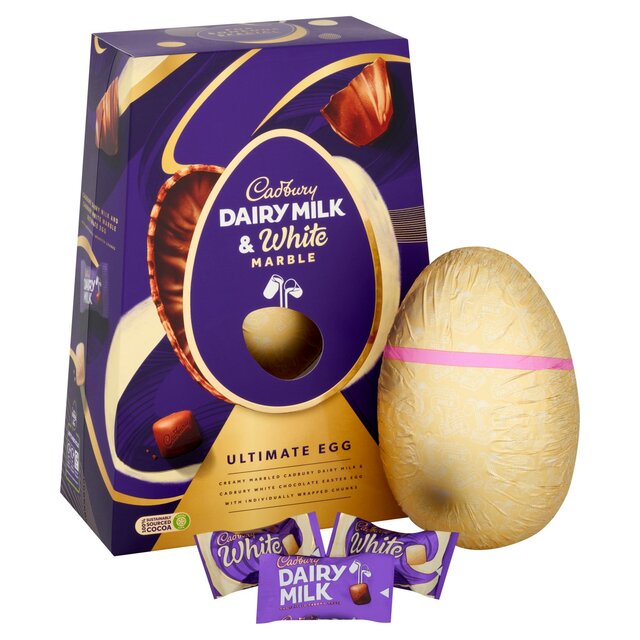 Creamy marbled Cadbury dairy milk & Cadbury white chocolate Easter egg with individually wrapped chunksYour Easter egg has been made with Cadbury dairy milk