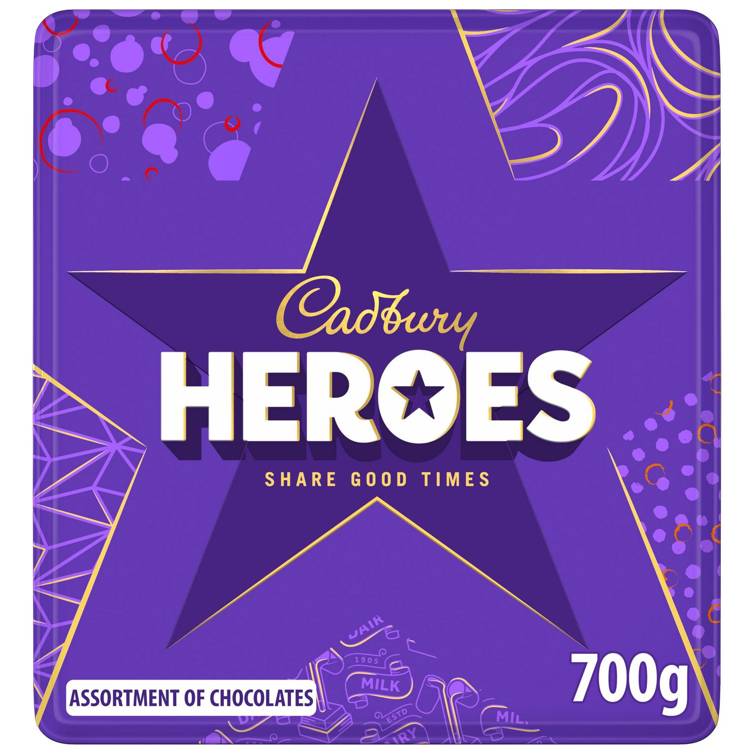This Cadbury Heroes tin contains a varied selection of popular chocolates and toffees packaged in a 700g tin. The festive packaging features the iconic Cadbury purple and gold branding, perfect for gifting or serving during celebrations. This assortment allows everyone to find a favourite treat from the collection inside.