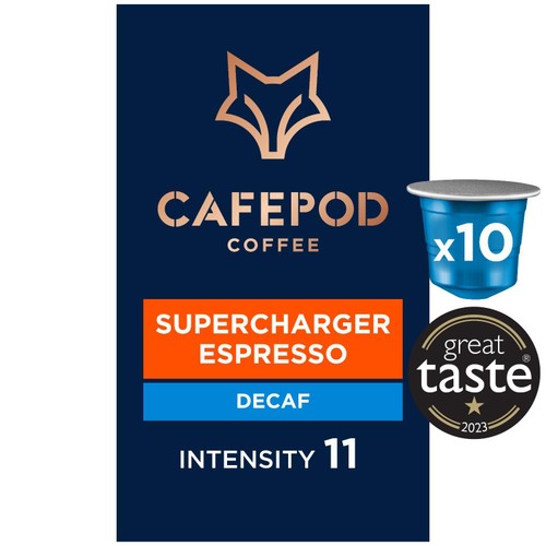 10 Sluminium pods compatible with Nespresso* Original system. Contains roasted ground decaffeinated coffee.