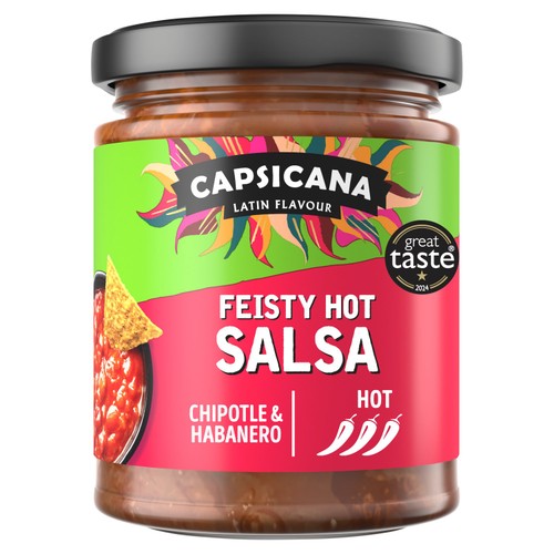 This Capsicana Full On Feisty Salsa is packed full of robust flavour designed for maximum impact. It delivers a noticeable, punchy kick of heat that genuinely elevates accompanying dishes. Serve this versatile condiment alongside your favourite Mexican meals or enjoy it simply as a satisfying dip for tortilla chips.