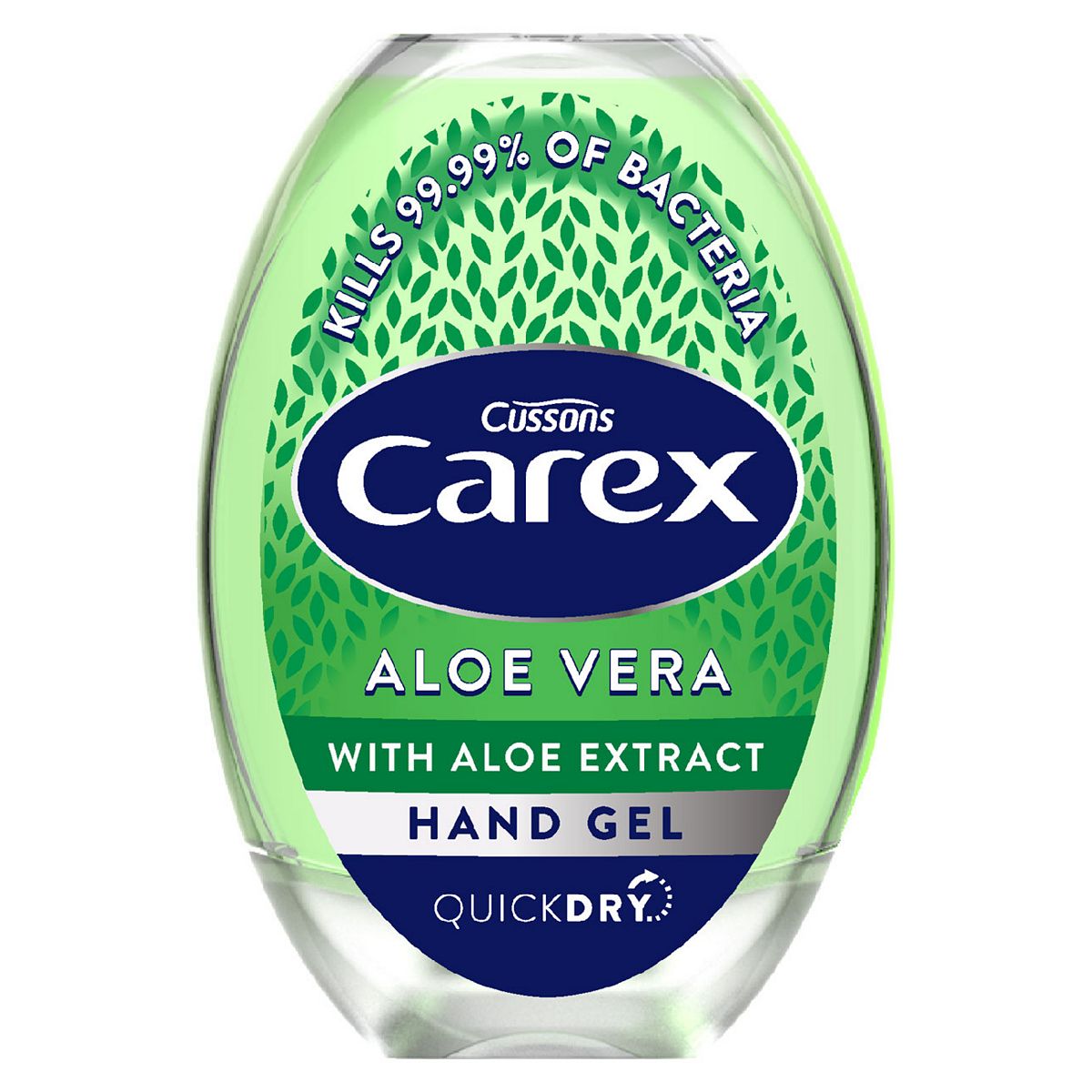Carex Aloe Vera Hand Gel 50mlCarex Aloe Vera Hand Sanitising Antibacterial Hand Gel. Cleans, Cares and Protects, so you and your family can feel free to get stuck into life, at home and when you're on the go. The quick drying formulation , with 70% Ethanol content, kills 99.99% of bacteria.
