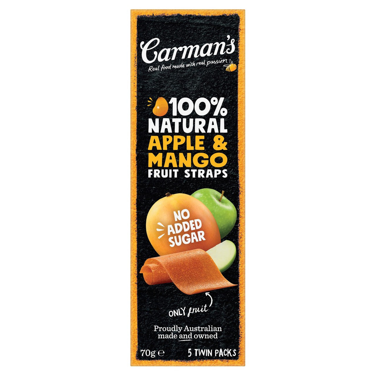 Carmans Kitchen offers these convenient fruit straps made entirely from 100% real fruit ingredients. Crafted with natural flavouring from sweet Aussie apples and tropical mangoes, these straps provide a simple, wholesome treat. Each package contains five individually wrapped portions, making them easy to pack and enjoy throughout the week.