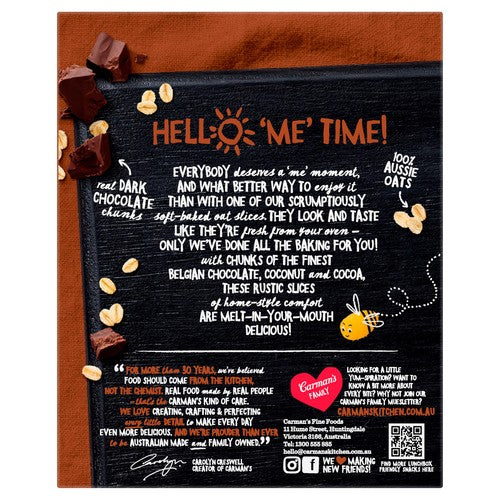These Carmans Kitchen slices offer rustic, home-style comfort in a convenient oat bar format. They are specially baked to closely resemble fresh-from-the-oven treats. Each slice incorporates rich flavour elements for a satisfying snack experience.